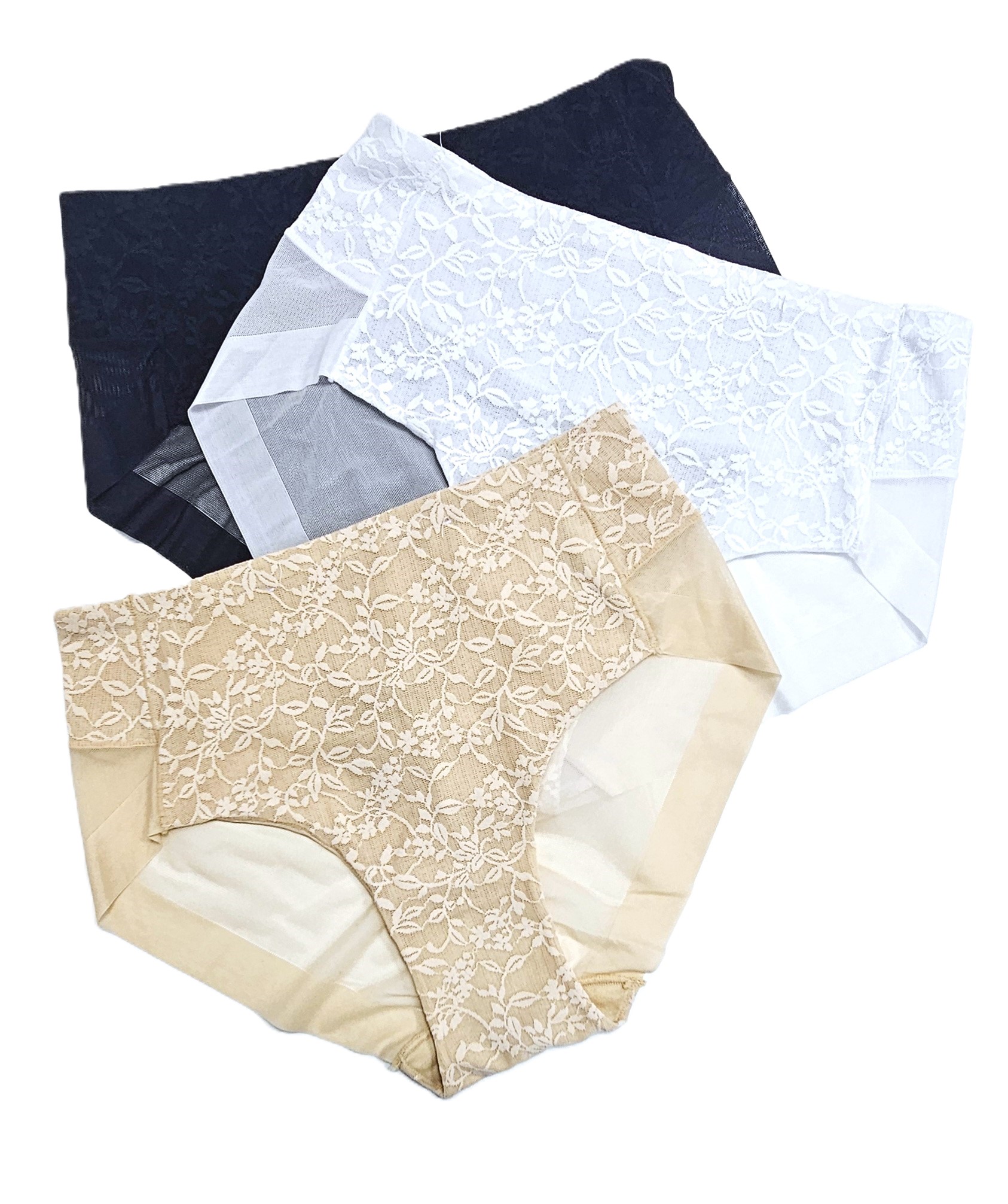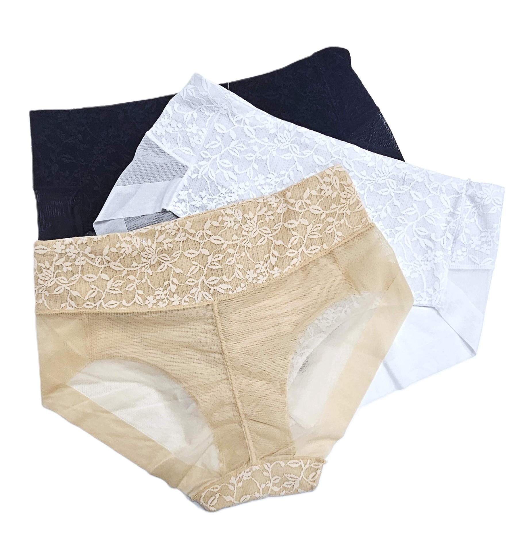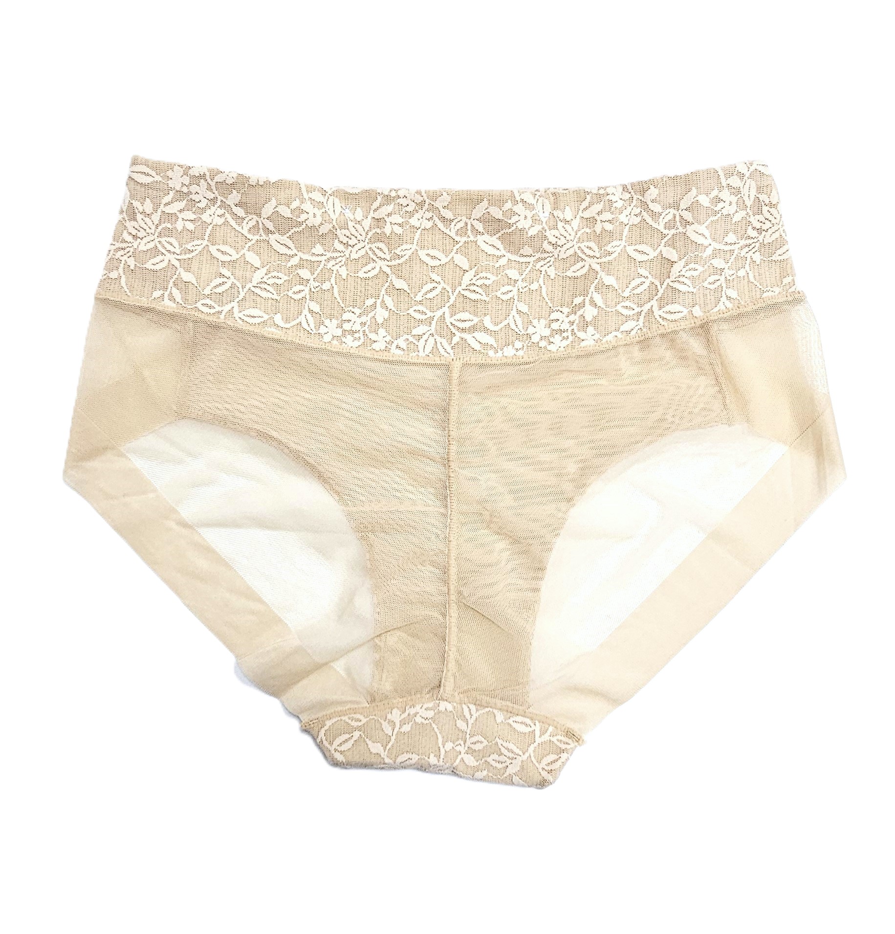 Chiloți fără cusătură de dantelă cu talie înaltă, posterior semitransparent.