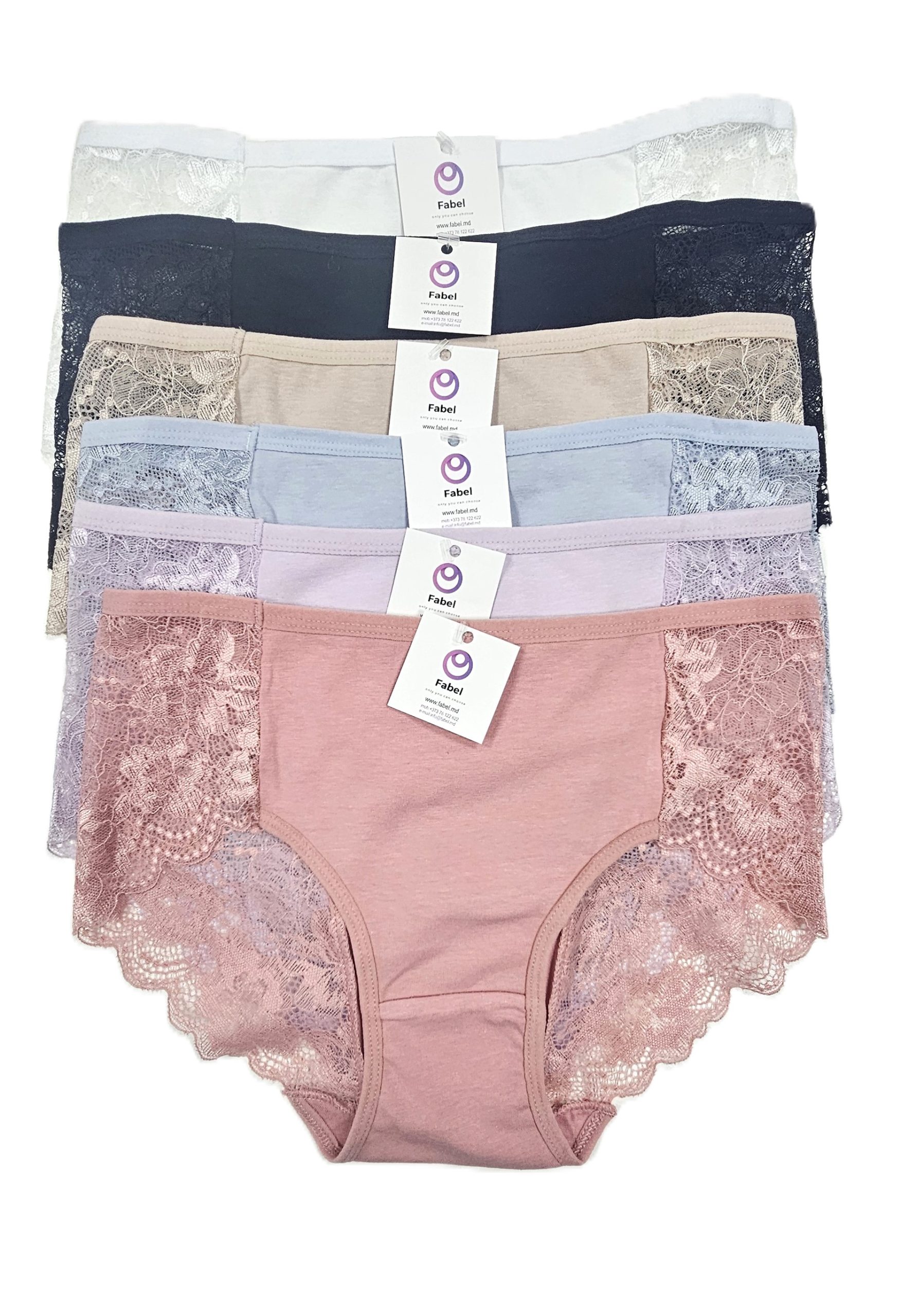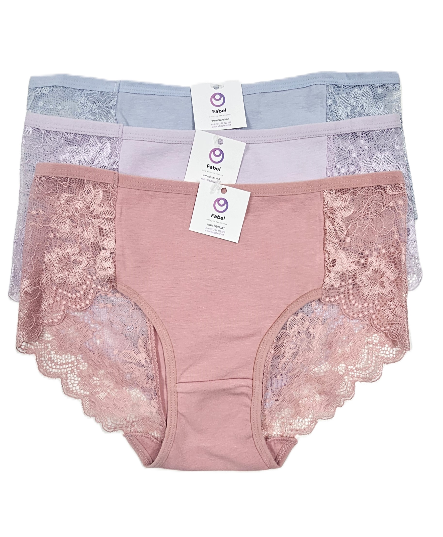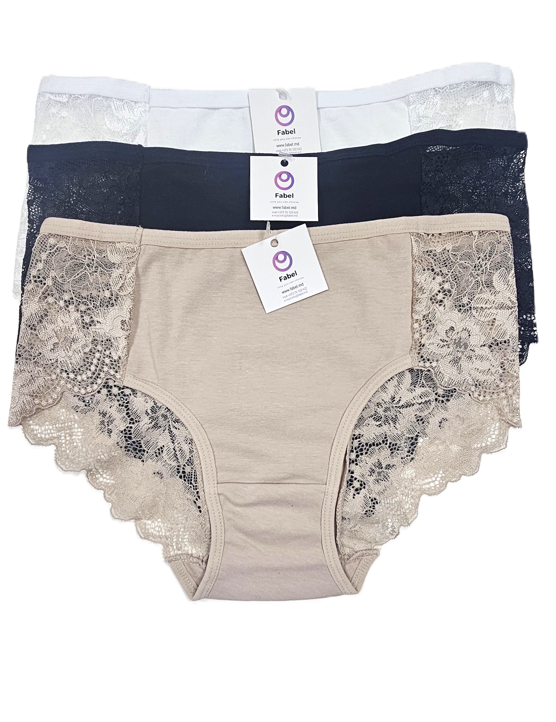 Chiloți clasic din bumbac cu dantelă și talie înaltă