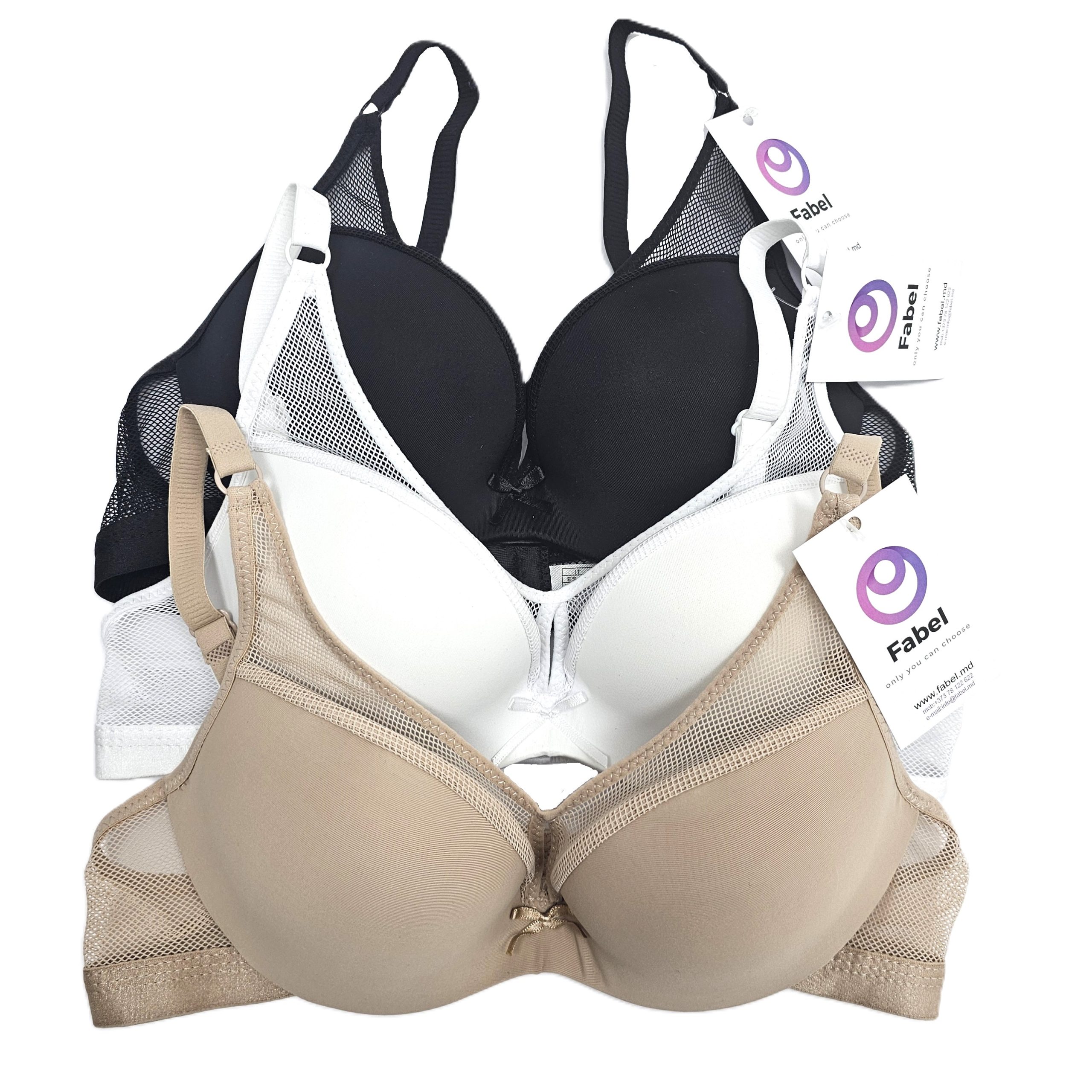 Sutien Push-up, microfibră cu dantelă, semitransparent la bust și spate.